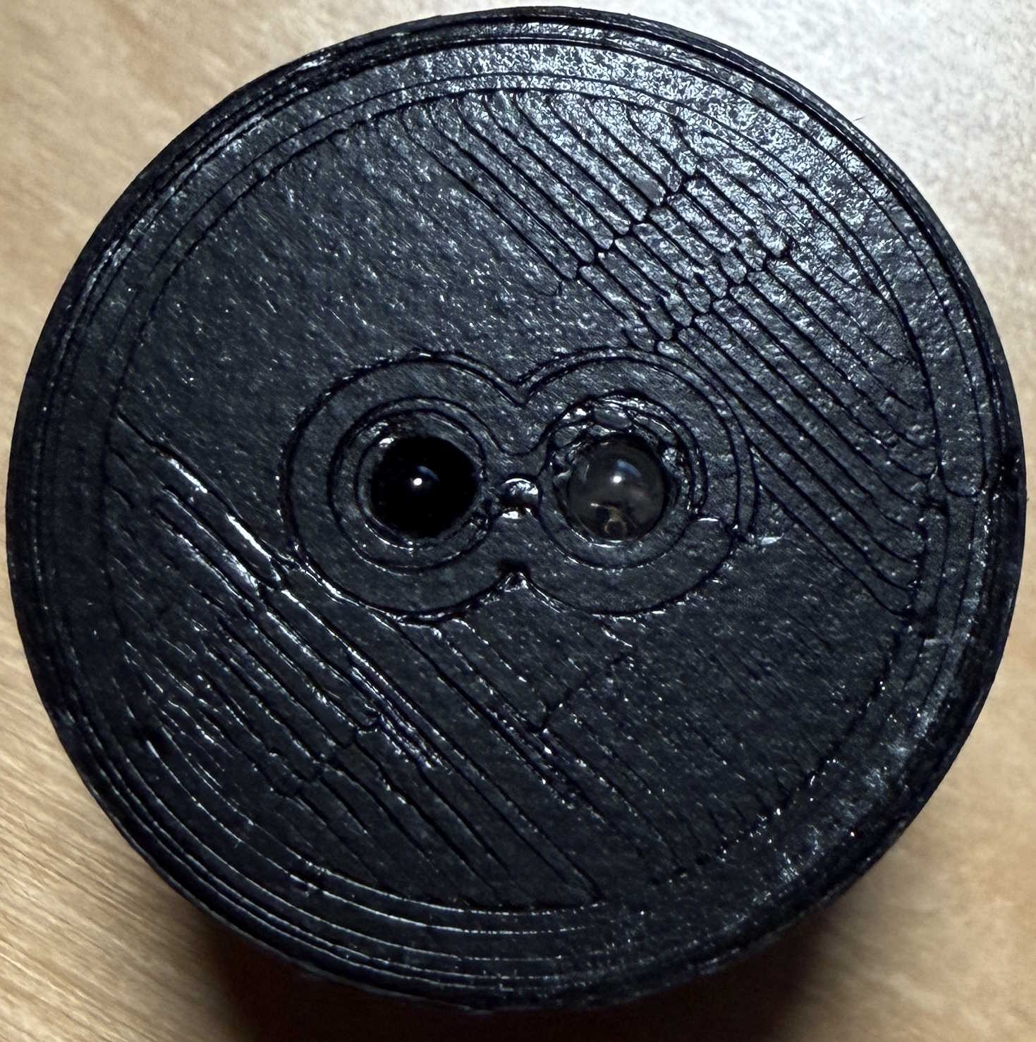 Die Fläche um das runde Fensterchen ist metallisch ausgeführt, damit man einen Infrarot-Lesekopf mit einem Magneten über der IR-Schnittstelle platzieren kann.