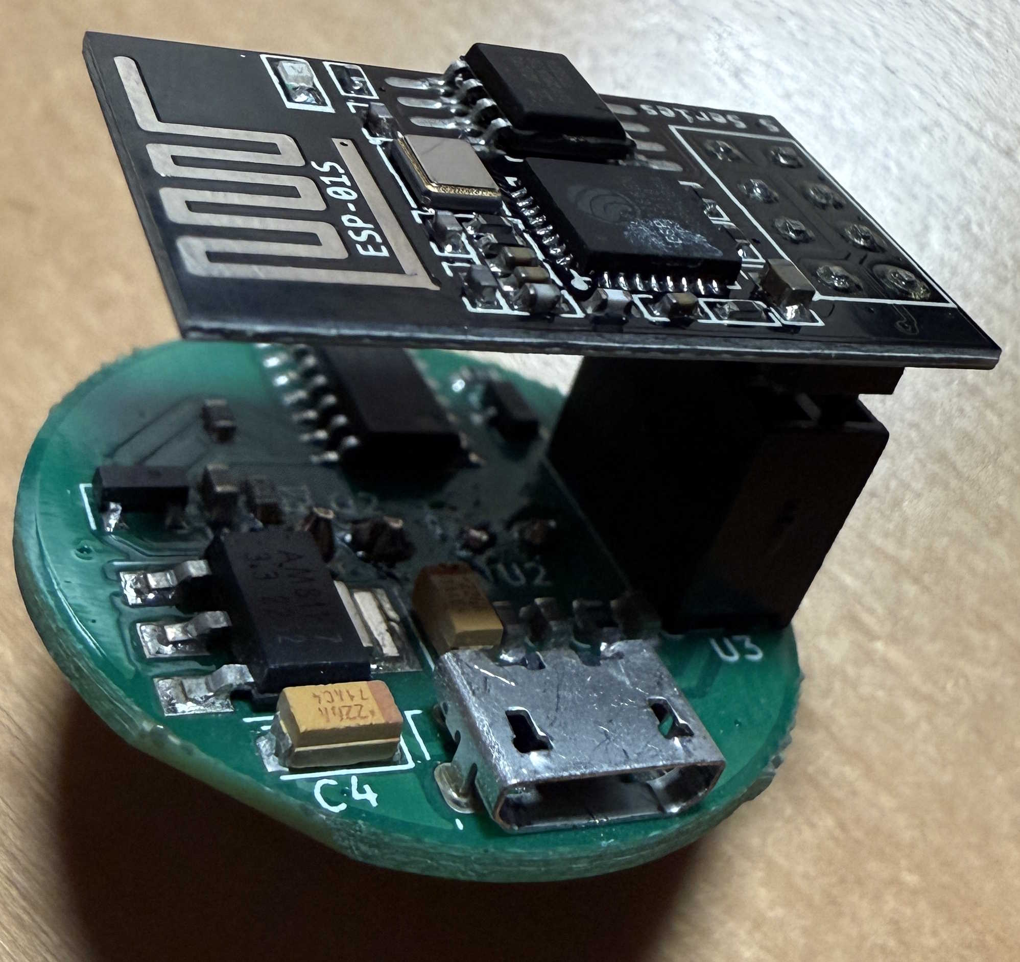 Die Leseköpfe enthalten in ihrem 3D-gedruckten Gehäuse einen Magneten, eine Leiterplatte mit der Mikro-USB-Buchse, einem Spannungsregler für 3,3V, einem Logikbaustein und den IR-Sende- und Empfangsdioden sowie eine ESP-01S-Leiterplatte.