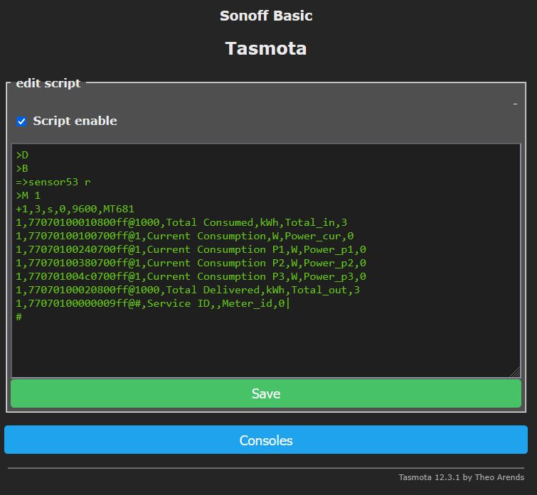 Dazu wählt man im Tasmota Menü den Punkt Consoles -> Edit Skript.